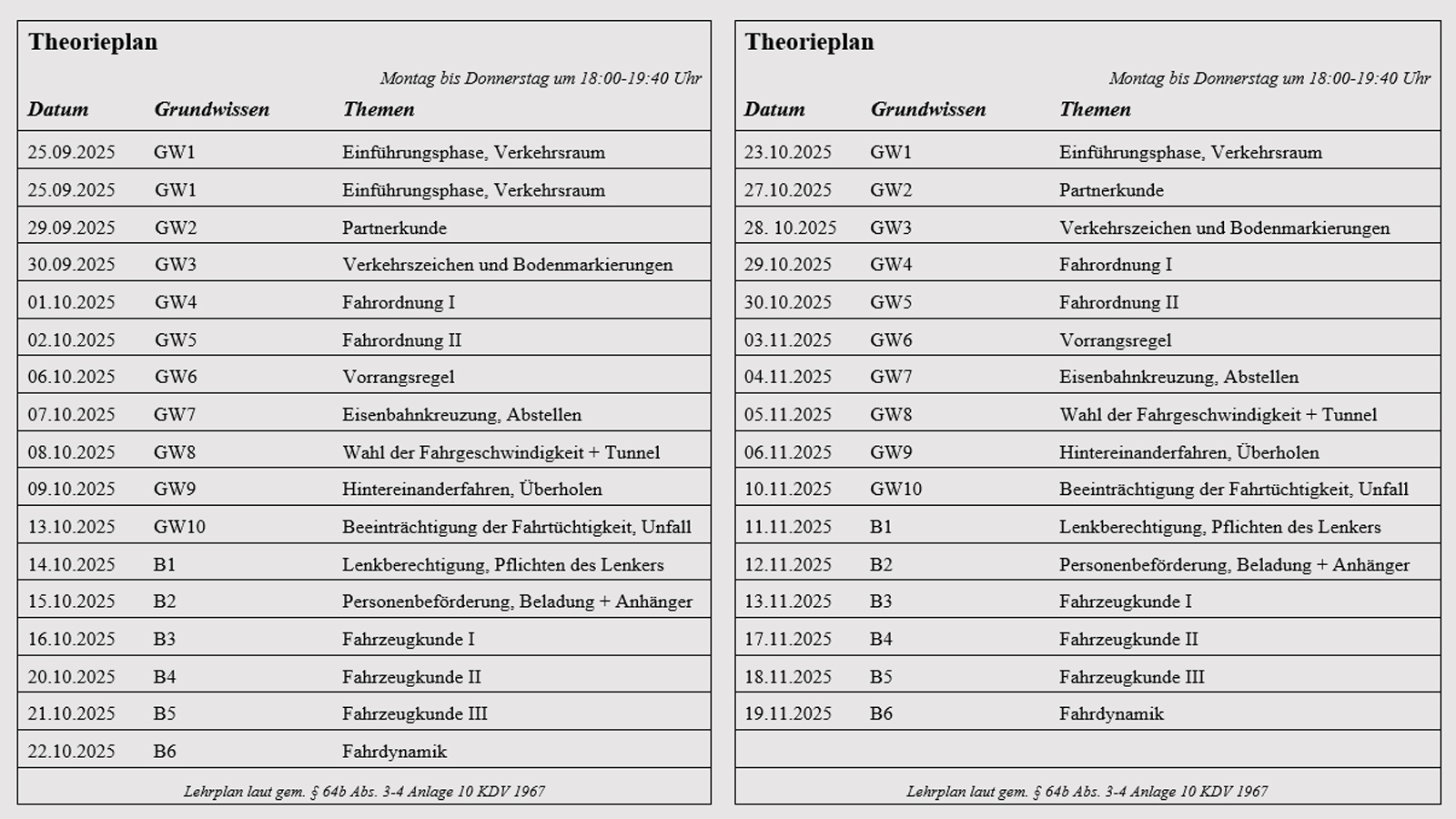 Zusätzlich haben Sie die Möglichkeit zu dieser B-Vollausbildung auf Wunsch die L-Tafel zu beantragen. Diese können Sie aber nur dann beantragen, wenn ihr Begleiter seit 7 Jahren im Besitz eines B-Führerscheines ist und in den letzten 3 Jahren der Führerschein nicht entzogen wurde. Für die L-Tafel wäre dann noch ein Betrag in der Höhe von € 80,- (Fahrschule € 40,- + Verkehrsamt € 40,-) zu zahlen.